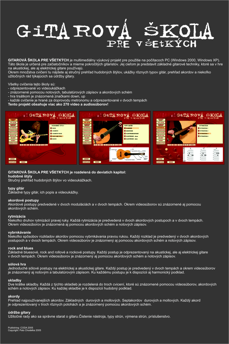 nový multimediálny projekt ROCKOVÁ GITAROVÁ ŠKOLA, na nosičoch CDROM.